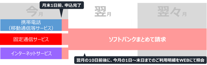 ※本サービスにお申込みいただくと、全ての料金請求が携帯電話(移動通信等サービス)の請求締日となります。